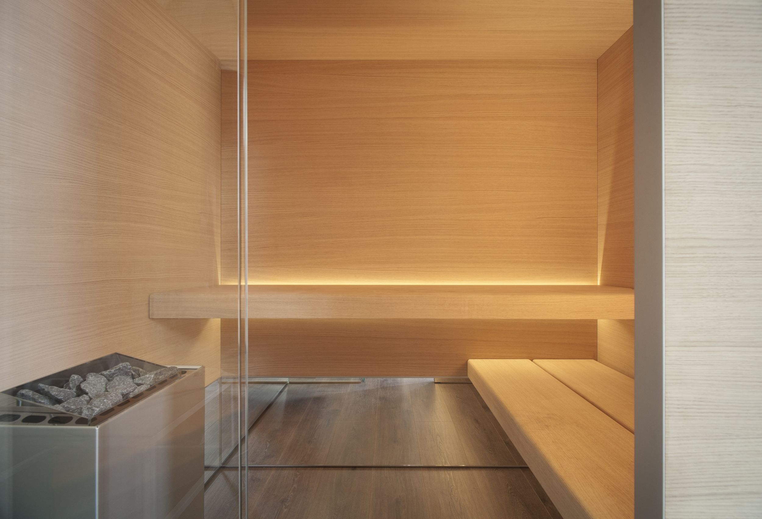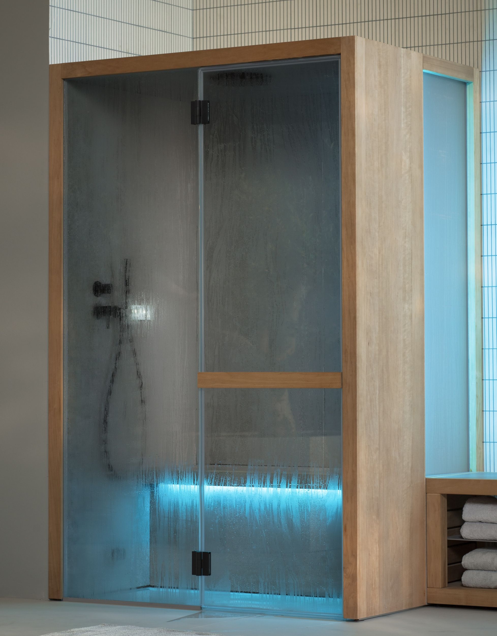 Für unsere Saunen verwenden wir ausschließlich hochwertiges Holz wie Espe, Hemlock und Zeder. Dampfbäder werden aus robustem Glas, Edelstahl, Fliesen und Feinsteinzeug gefertigt, um Langlebigkeit und ein luxuriöses Ambiente zu gewährleisten.