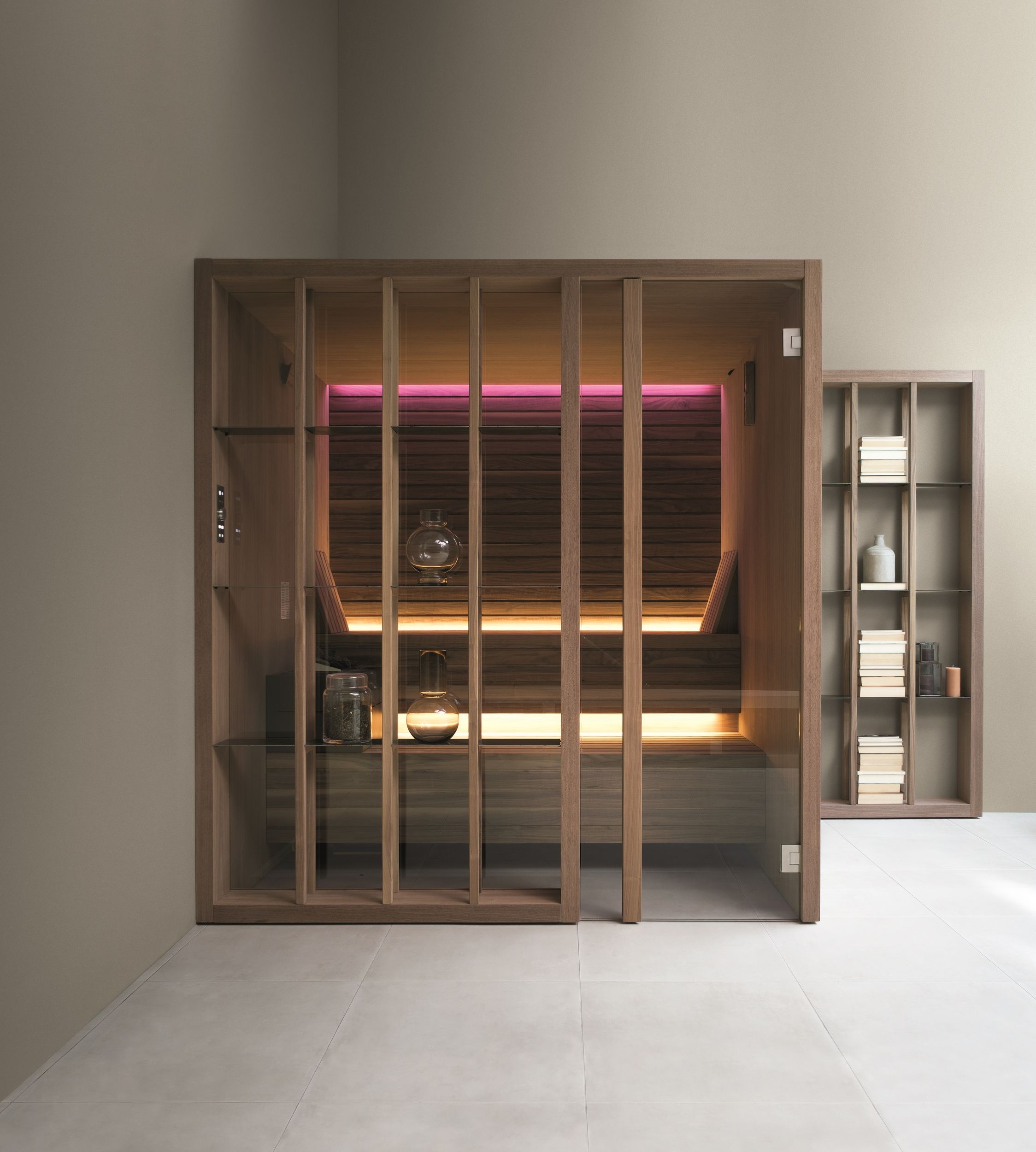 Die Saunen und Dampfbäder können mit einer Vielzahl von Extras ausgestattet werden, darunter integrierte Licht- und Klangsysteme, Aromatherapie und Farblichttherapie sowie Smart Home Steuerungen. Zudem bieten wir praktisches Zubehör wie Kopfstützen und Saunakübel an.